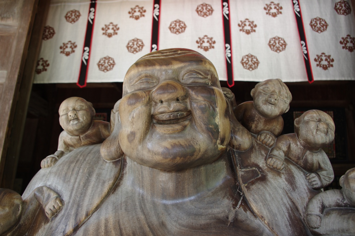 - なぜか本堂のお賽銭箱の守りは布袋様
