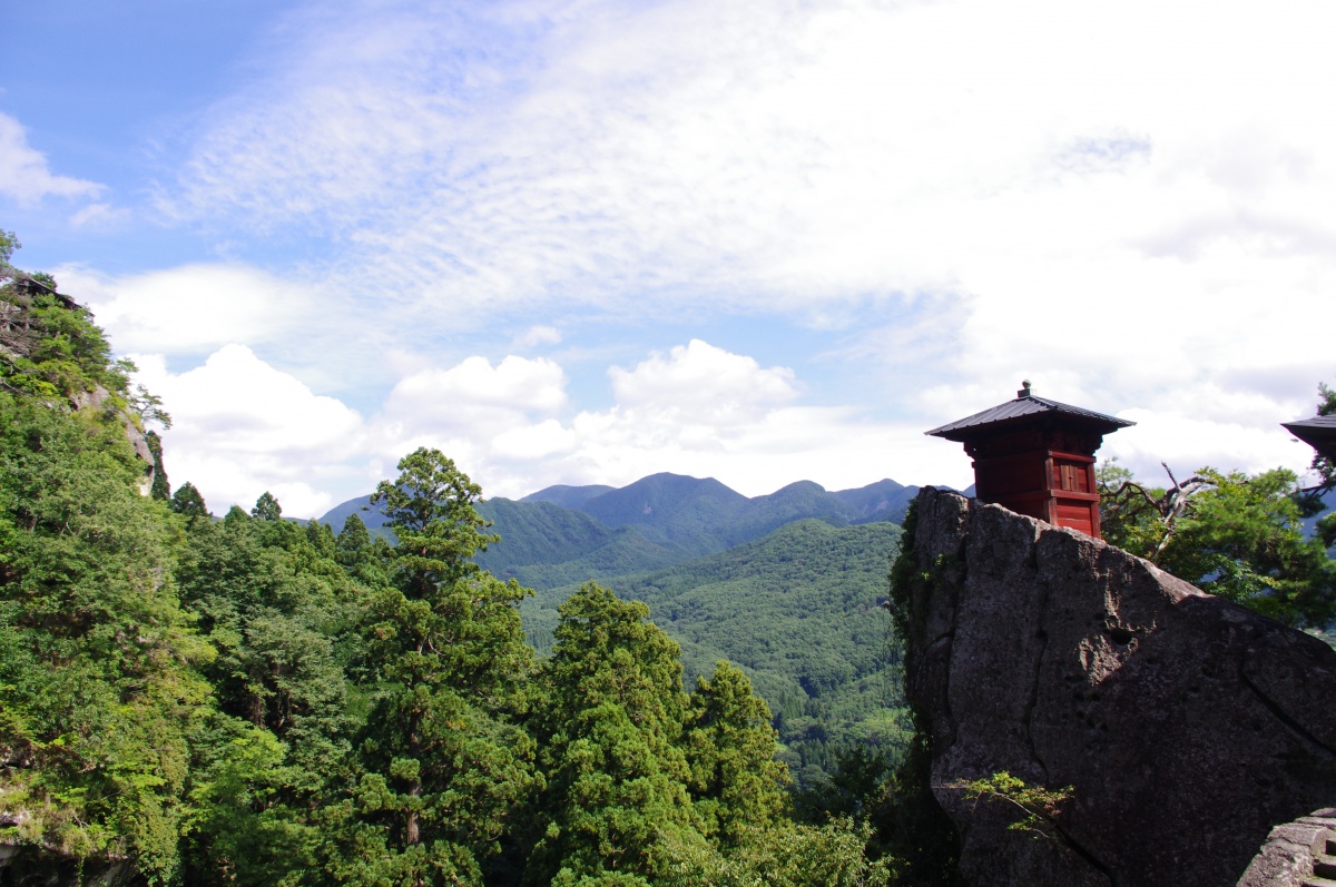 仙台に親戚がいたので、子供の頃に山寺にも来た事がある。山寺というとやはりどうしても松尾芭蕉の句を連想するので、夏のイメージがある。今回も特に夏をねらったわけではないが、9月初秋の山寺はまだまだ夏模様だった。今回は東京を出て、新幹線で仙台、JR仙山線で山寺へという道のりで来た。